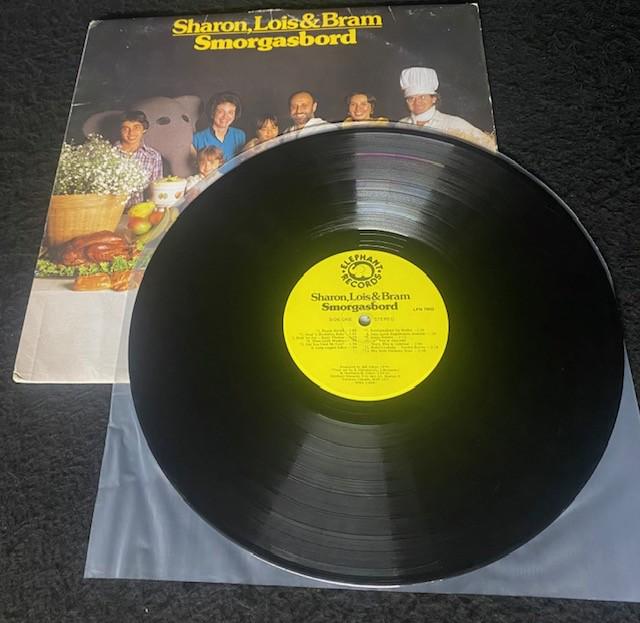 1. Sharon, Lois & Bram - Smorgasbord (1979) - Outer sleeve G condition shows some wear on corners, kid wrote names on bottom of front cover. Booklet included with lyrics and song notes. Record is in very good condition.